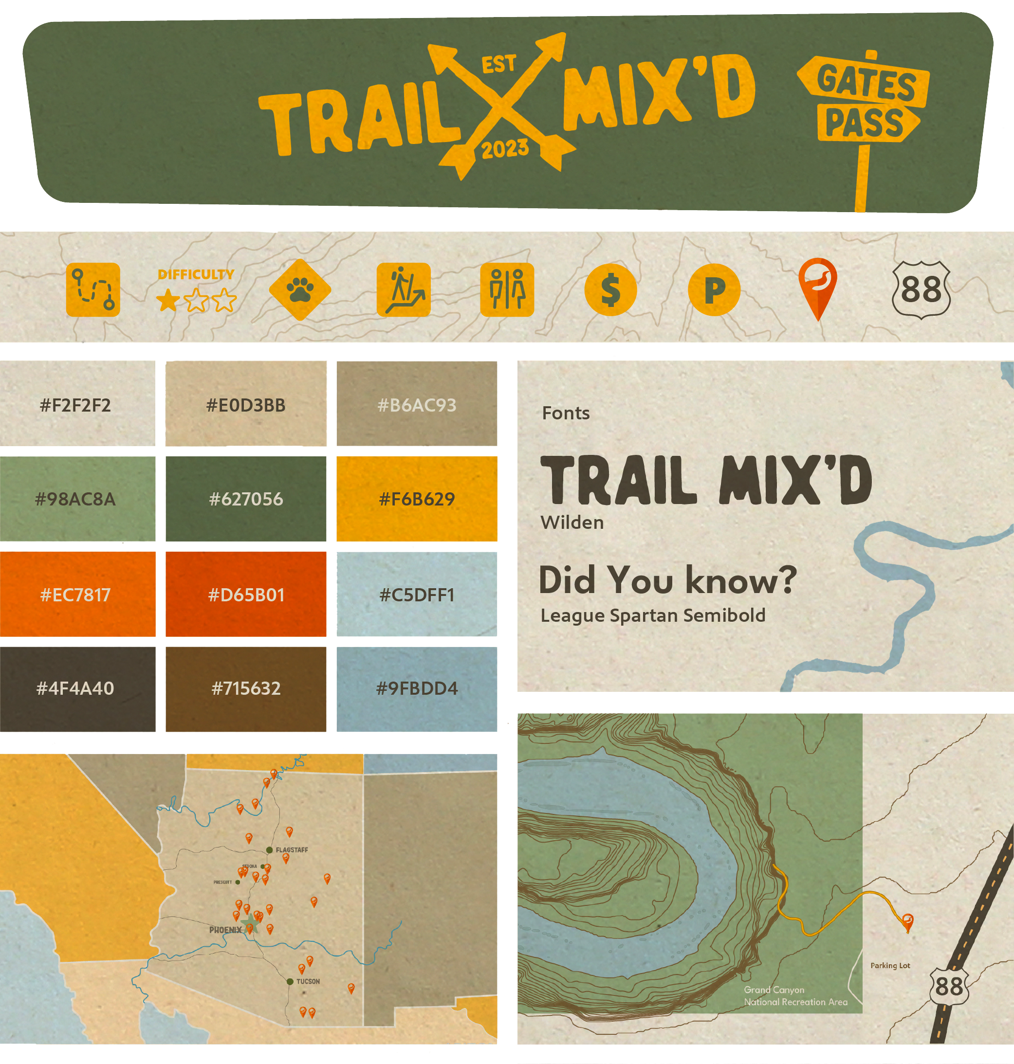 Building from Season 1’s branding of Trail Mix’d, the second season required an extended brand identity to support it’s growth in viewership and interest in the popular hiking show. With the addition of an extended color palette, lower thirds, detailed trail maps, and printed promotional material, Season 2 of Trail Mix’d successfully launched October 3, 2024 with 13 episodes on Arizona PBS channel 8.1 and across ArizonaPBS.org as well as PBS Passport digital streaming platform.